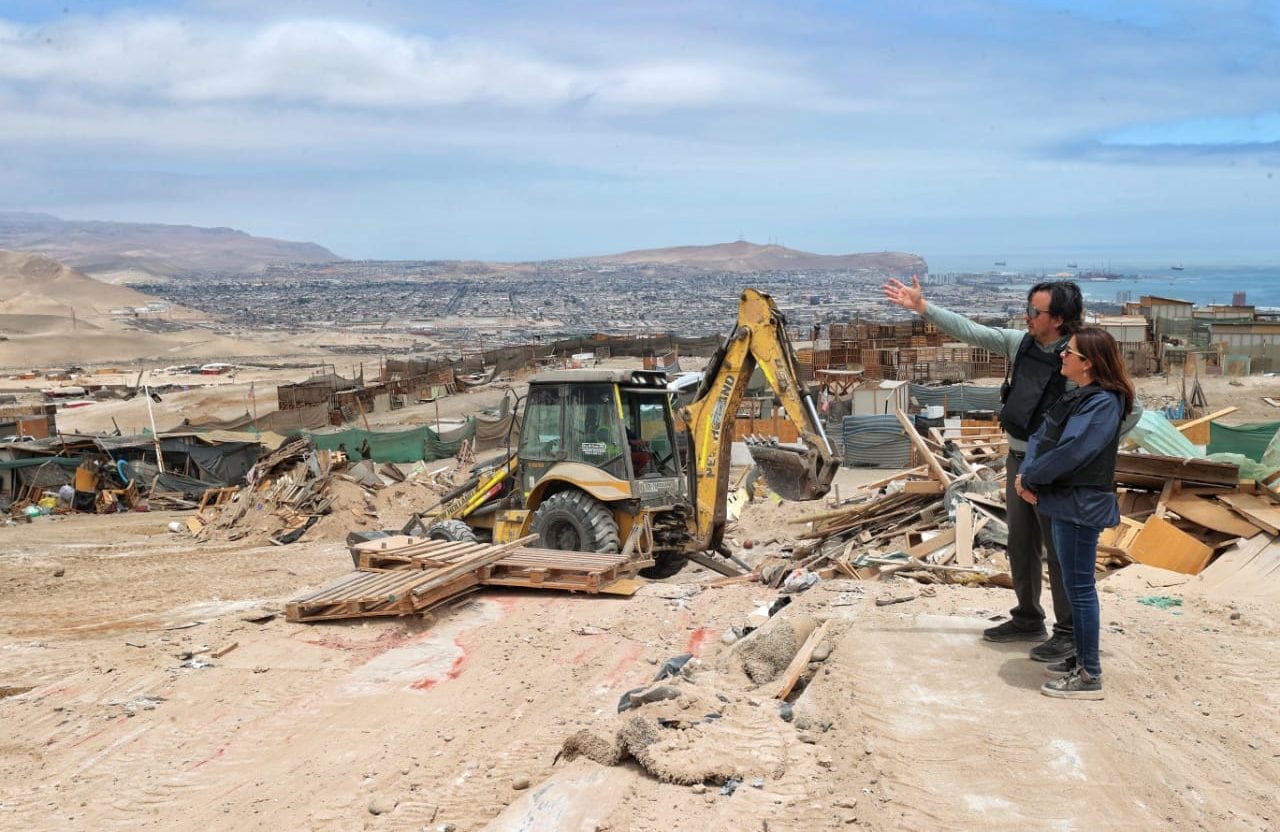 Ministra Marcela Sandoval Osorio monitoreó en terreno la exitosa operación que llevó a cabo su cartera en conjunto con la Delegación Presidencial Regional, Carabineros y la Policía de Investigaciones, la que permitió desactivar inmuebles fiscales que habían sido tomados por loteadores brujos en ese emblemático sector de la comuna de Arica vinculado a bandas delictuales del Tren de Aragua. “Como gobierno, seguiremos actuando para entregarle seguridad a la población y para que los terrenos fiscales que desalojamos tengan un buen uso”, señaló la secretaria de Estado.