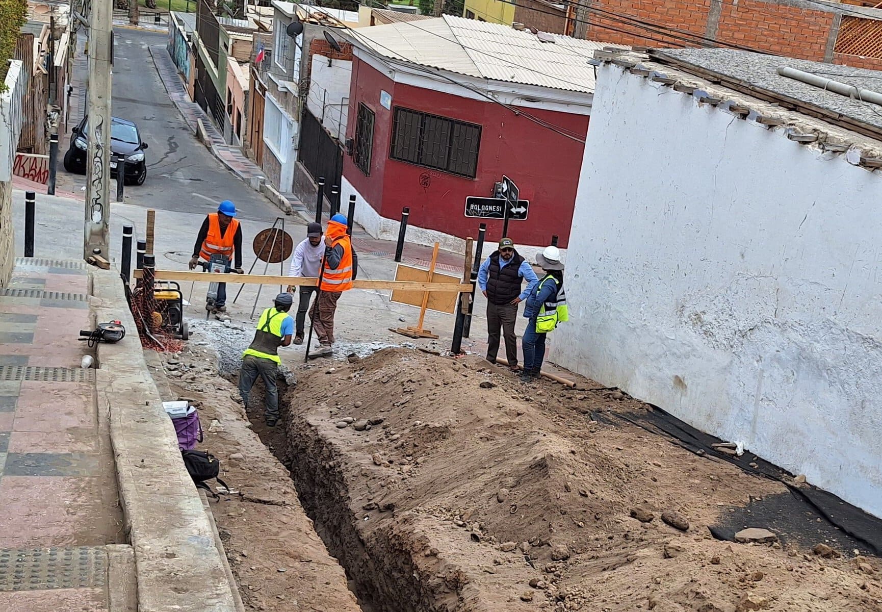 “Alcanzamos a renovar cerca de 40 metros de colector hasta Iris Carrasco, pero al continuar entre Iris Carrasco y Bolognesi, Monumentos Nacionales nos pidió detener las obras debido a la presencia de restos arqueológicos, luego comenzamos a trabajar en un protocolo para intervenciones en zona patrimonial”, precisó Carlos Herlitz.