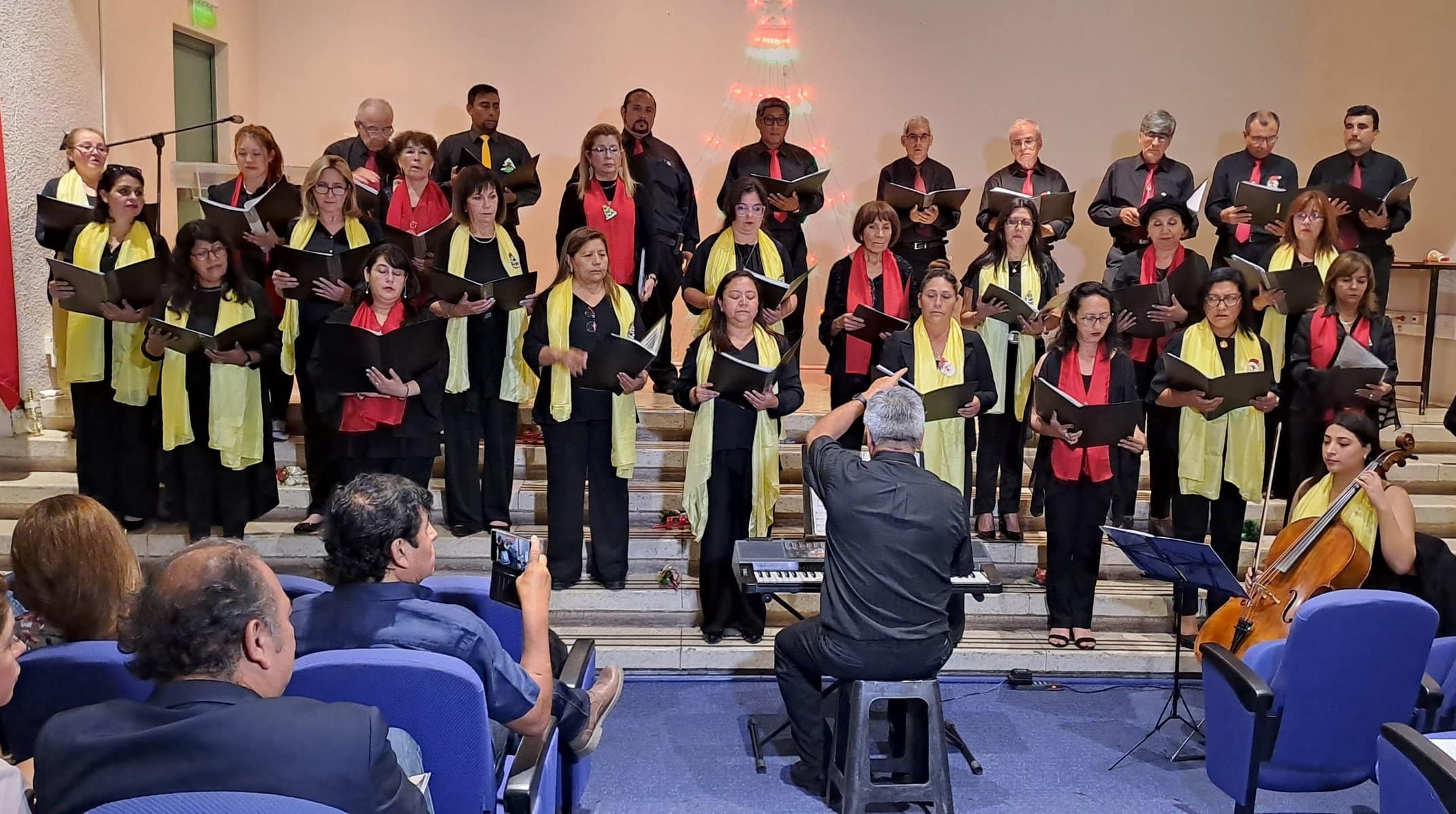 El coro, dirigido por José Patricio Sagal Caamaño, profesor de estado en educación musical e instructor del coro de la Universidad de Tarapacá, interpretó los villancicos; Venid, venid Emanuel, Ha venido Jesús, Adornemos nuestras casa, Noche De Paz, Signum y Oh Noche Santa.