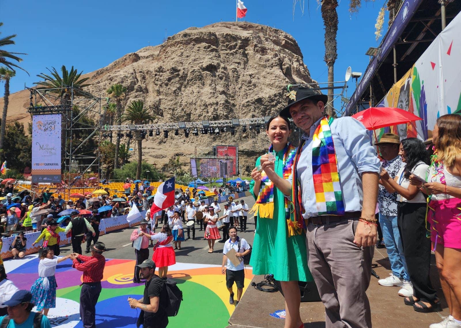 La ministra de las Culturas, las Artes y el Patrimonio, Carolina Arredondo Marzán, llegó este viernes 26 de enero de 2024 hasta la Región de Arica y Parinacota para participar en la inauguración de la primera jornada del carnaval Con la Fuerza del Sol, la fiesta estival más grande del norte de Chile y uno de los carnavales de mayor diversidad cultural en América Latina.