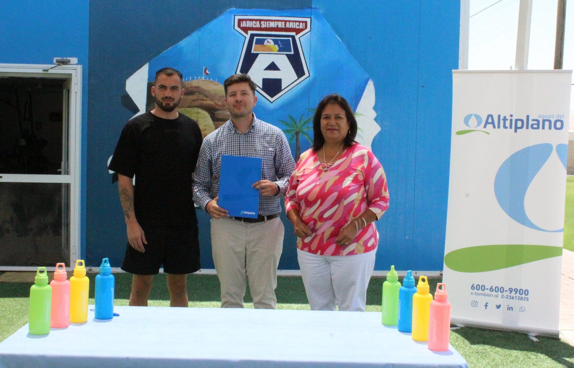 La firma se llevó a cabo en el complejo deportivo del club, ubicado en Pampa Ossa, y contó con la participación del Gerente General de la Casa del Bravo, Julián Rodríguez Ferrada y la Gerenta Zonal Arica de Aguas del Altiplano, Claudia Rojas Muñoz.