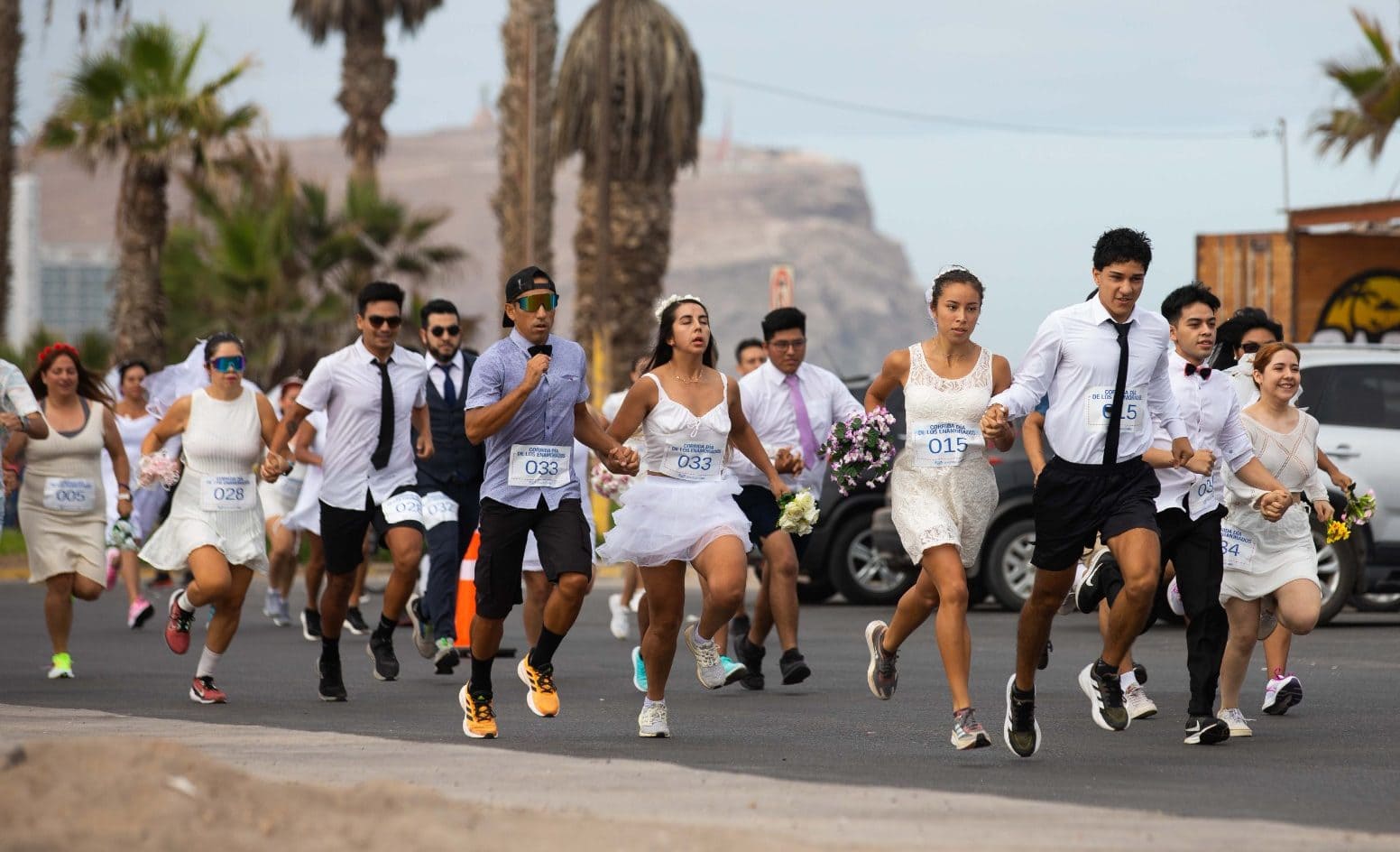 El amor es más fuerte dijo el Papa Juan Pablo II, y vaya que tenía razón. Porque para correr 2 kilómetros a todo sol y vestido de novia o de novio, hay que estar completamente enamorado. Sin duda, la “loca” carrera organizada por Enlace Norte de la Municipalidad de Arica en playa Chinchorro, rompió todos esquemas habidos y por haber.