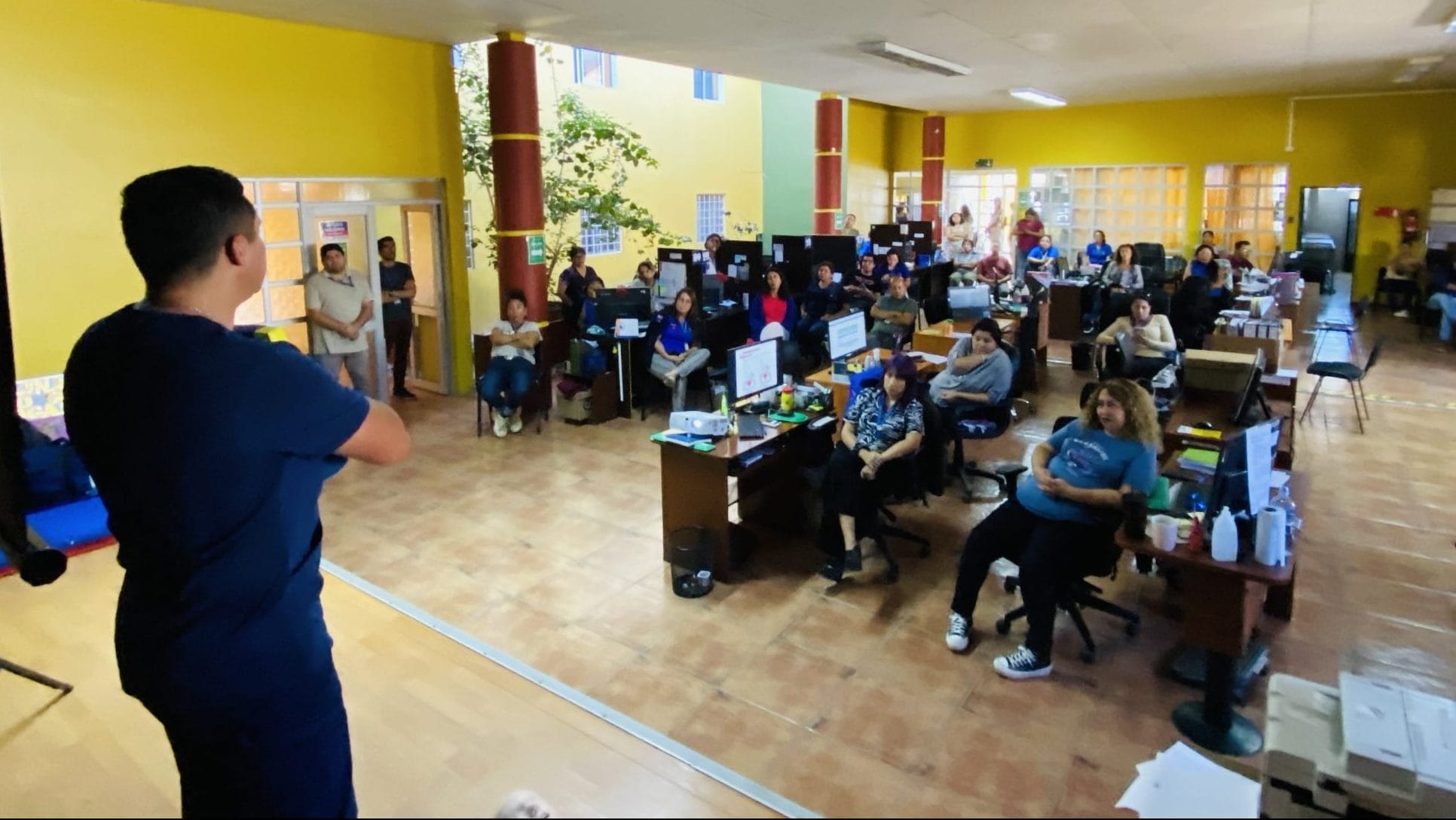 Los enfermeros Gonzalo Muñoz y Eduardo Farfán, miembros destacados de la Dirección de Salud Municipal (DISAM), llevaron a cabo una jornada de capacitación en Reanimación Cardiopulmonar (RCP) básica y el manejo de desfibriladores. Esta iniciativa, dirigida a funcionarios de la Dirección de Desarrollo Comunitario (DIDECO), tuvo como objetivo fortalecer las capacidades del equipo y mejorar la respuesta ante situaciones de emergencia en la comunidad.