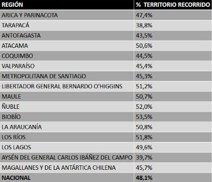 El avance territorial por regiones se detalla a continuación: