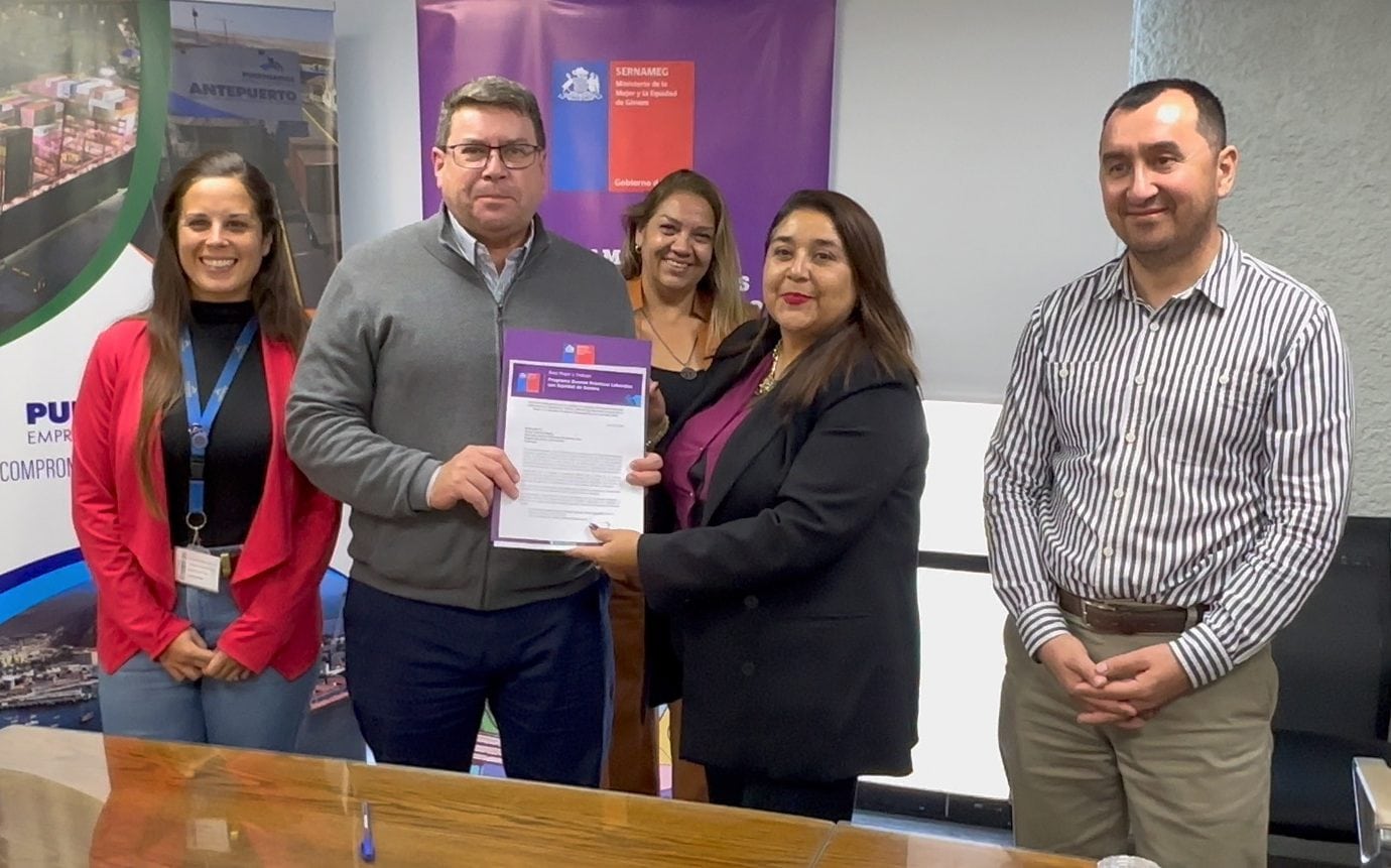 Con la firma de aceptación de la carta, se concretó el inicio de un trabajo junto al SernamEG que permitirá levantar medidas para enfrentar las brechas de género en el empleo y propiciar la co‐responsabilidad, entre otras acciones.