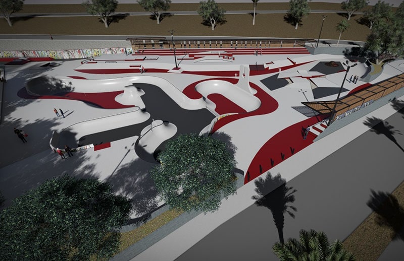 El proyecto, desarrollado por la Secretaría Comunal de Planificación de la Municipalidad de Arica, abarca un total de cinco etapas, sumando en conjunto cerca de 8.000 metros cuadrados. La primera etapa incluirá jardineras patinables que conectarán con el resto del parque. La segunda etapa consiste en el “Street principiante”, un área con cuatro obstáculos de baja dificultad diseñada para los novatos del skate.