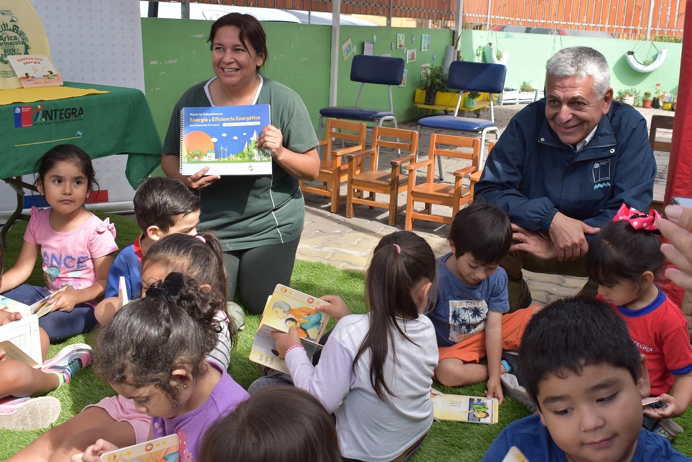 Con el objetivo de promover la incorporación de la sostenibilidad energética en establecimientos educacionales, el Seremi de Energía, Julio Verdejo, hizo entrega al Director regional de Integra, Jorge Yáñez, de materiales educativos que permitirán generar un relato significativo para niños y niñas acerca del uso de la energía. Los libros fueron destinados al Jardín Infantil y Sala Cuna Nueva Esperanza, donde fueron recibidos por su Directora, Angélica Valdés Pezo.