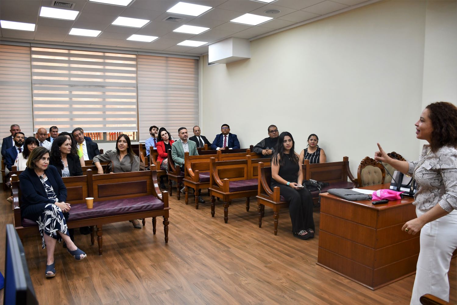 El administrador del tribunal de alzada, Raúl Marchant Lira agradeció a Romina Leblanc por dictar esta charla, la que fue seguida con atención por los representantes de los tribunales ariqueños.