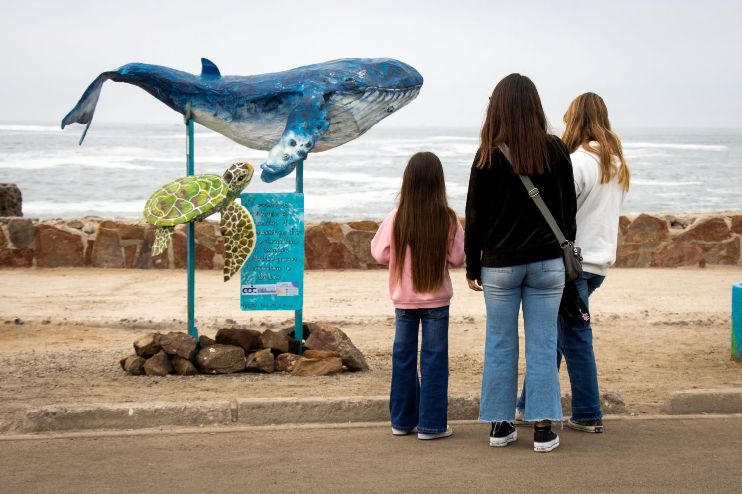 Con estatua de ballena y tortuga buscan concientizar sobre el cuidado del océano