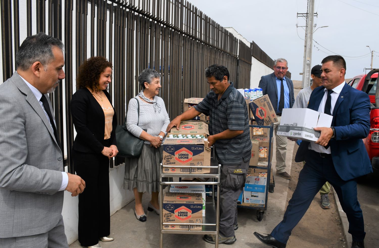 En efecto, la ministra Juana Ríos y el administrador del tribunal de alzada, Raúl Marchant Lira, llevaron más de 400 litros de leche sin lactosa, que es la que consumen los adultos mayores del establecimiento, cajas que aportaron todos los tribunales de la jurisdicción.