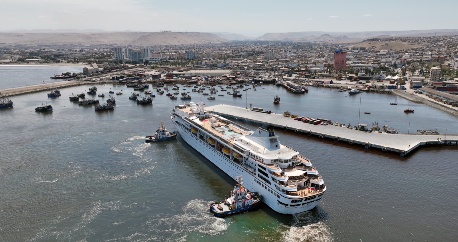 Con más de 350 visitantes recaló en el puerto de Arica el Ms. Villa Vie Odyssey, un crucero de expedición que permanecerá durante dos días, permitiendo que los cruceristas recorran los distintos atractivos locales.