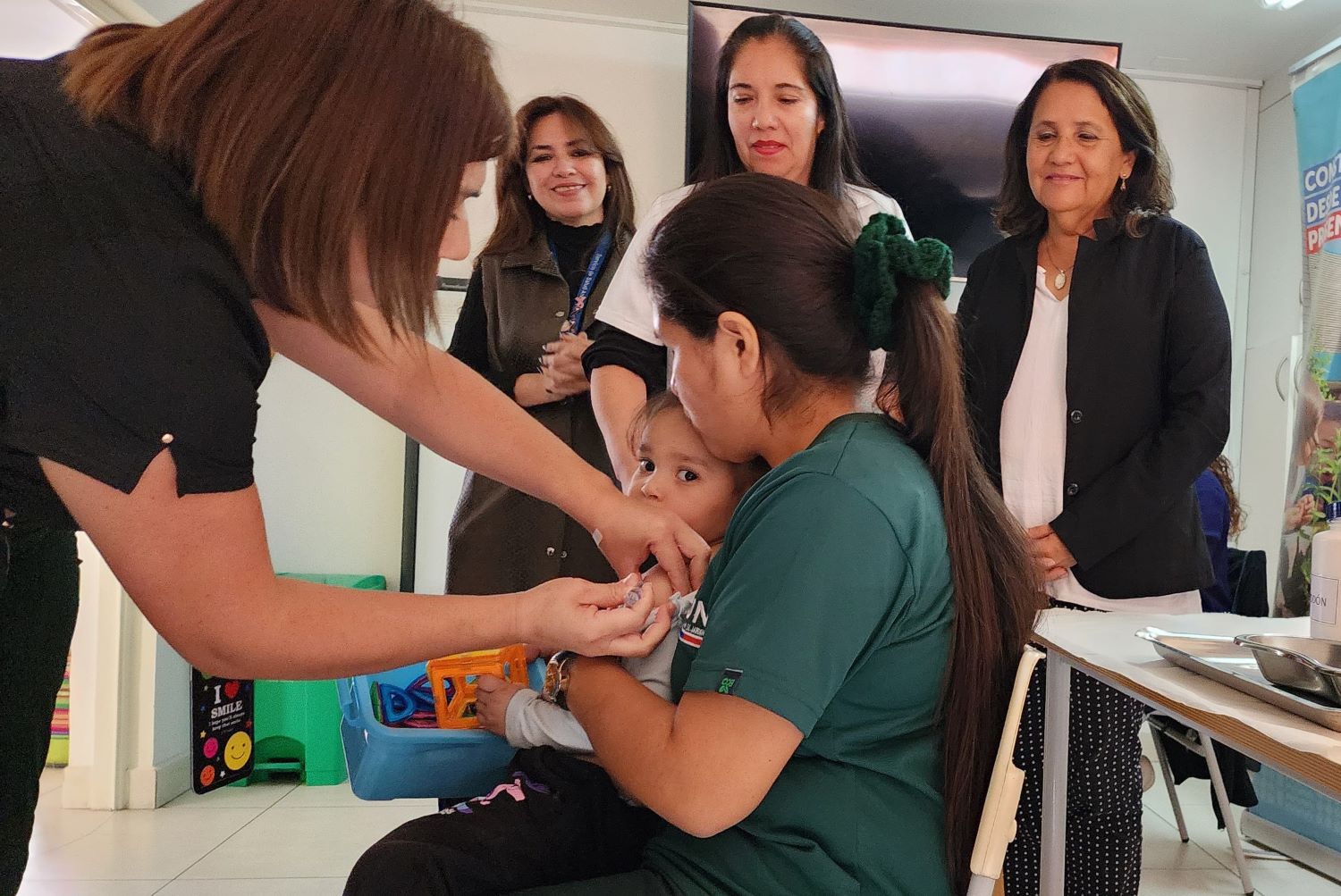 La actividad fue encabezada por la seremi de Salud, Marta Saavedra; junto a la directora del Servicio de Salud, Patricia Sanhueza; la directora (s) de Junji, Layleen González; y la directora (s) de Salud Municipal (Disam), María José Escauriaza, quienes destacaron la importancia de la vacunación en la primera infancia.