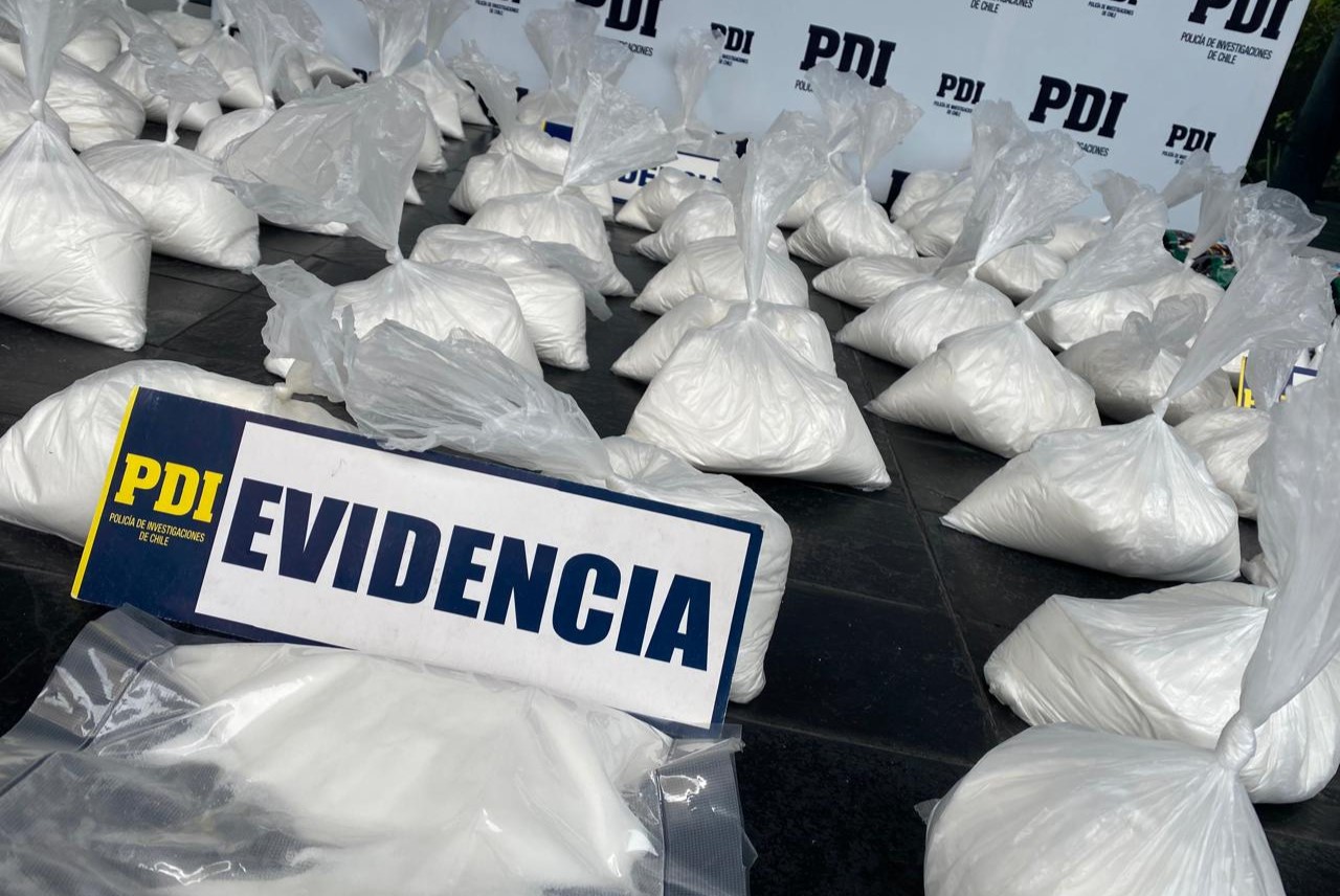 En el marco del 92° Aniversario de la Policía de Investigaciones de Chile, la Brigada Antinarcóticos y Contra el Crimen Organizado de la PDI Arica recibió el galardón a la Excelencia en Investigación Criminal 2025 por el trabajo en esta investigación, en coordinación con la Unidad de Análisis Criminal y Focos Investigativos de la Fiscalía de Arica. Se incautaron casi 98 kilos de esta sustancia ilícita, en el marco de la desarticulación de una estructura criminal que internaba remesas de drogas vía marítima, desembarcándolas en Caleta Vitor. Hay 13 imputados en prisión preventiva y otros 11 identificados con orden de detención y alerta internacional de Interpol.