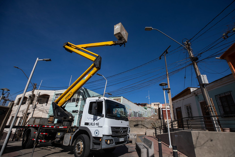Este martes, la dirección de Medioambiente, Aseo y Ornato (DIMAO) de la Municipalidad de Arica realizó labores de cambio completo del alumbrado público en la calle El Morro, ubicada en el caso histórico de la ciudad.