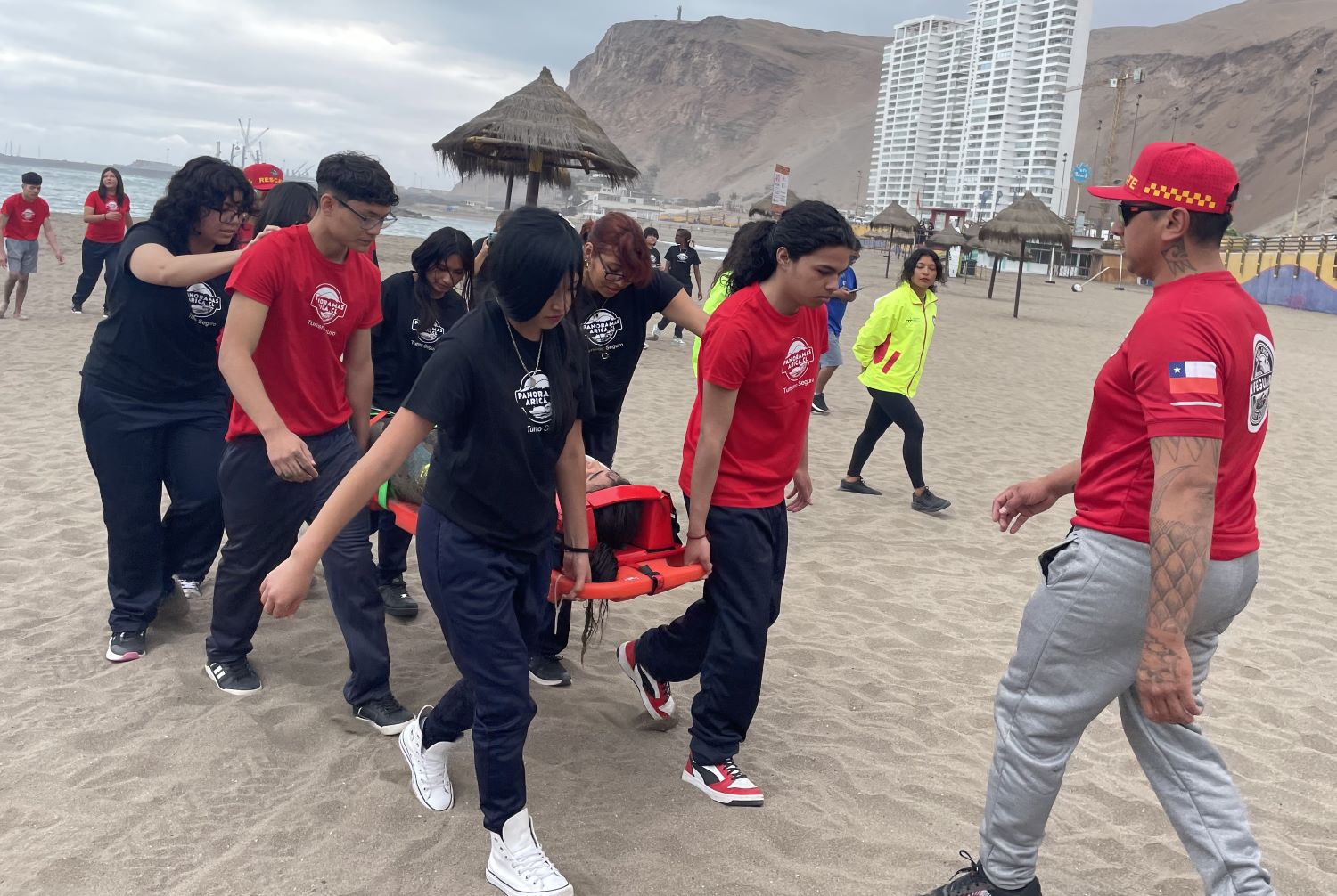 En simulacro del curso piloto Formación en Rescate Acuático para Actividades de Turismo Activo, que surgió de la colaboración entre Arica Siempre Activa A.G., iniciativa Corfo, Costa Chinchorro y Municipalidad de Arica.