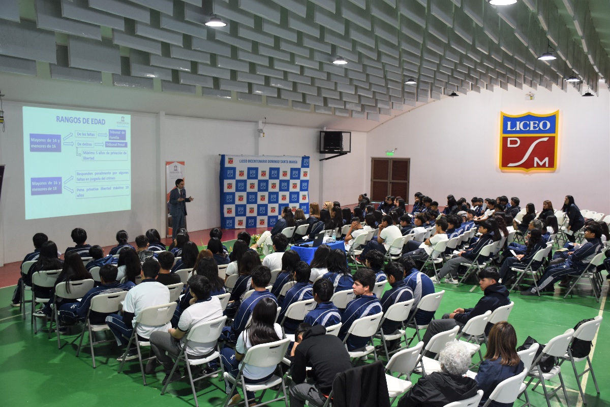 Más de 140 estudiantes de segundo medio del Liceo Bicentenario Domingo Santa María asistieron a una charla sobre la Ley de Responsabilidad Penal Adolescente dictada por la Corte de Apelaciones de Arica.
