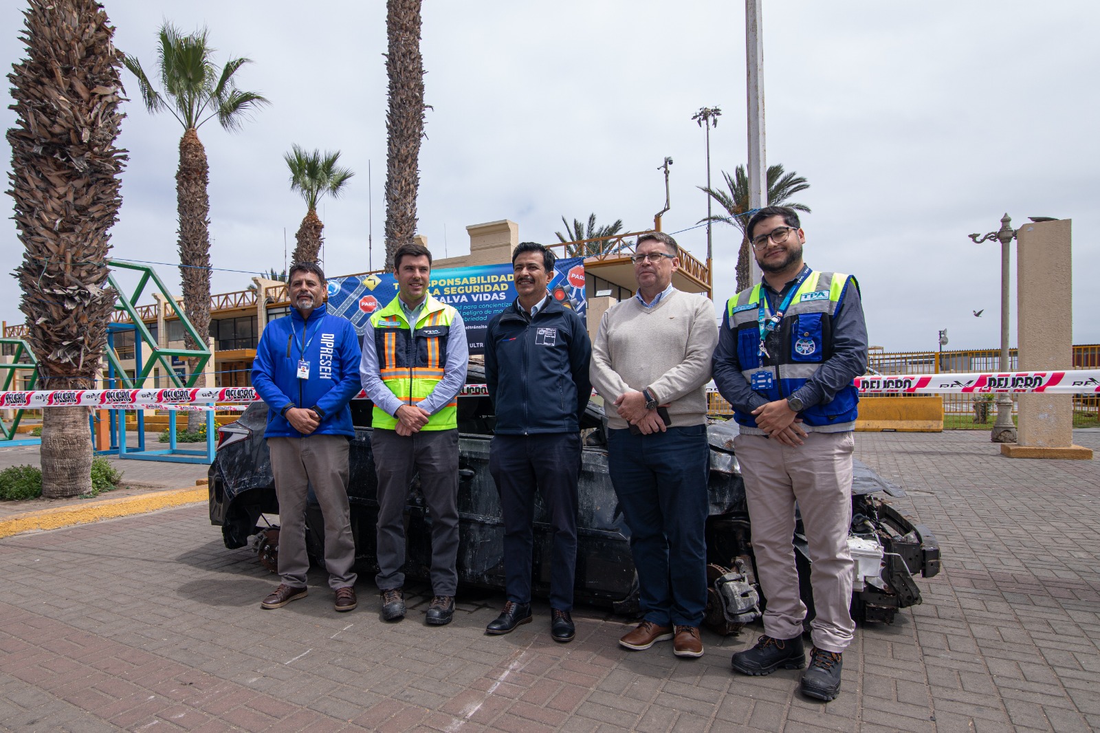 La iniciativa contempló una intervención frente a la entrada del puerto, donde se instaló un automóvil chocado como símbolo de los riesgos asociados a la conducción bajo los efectos del alcohol u otras sustancias. El objetivo fue transmitir un fuerte mensaje preventivo a la comunidad y a los propios colaboradores portuarios: “celebrar con responsabilidad para evitar accidentes que pueden cambiar vidas para siempre”.