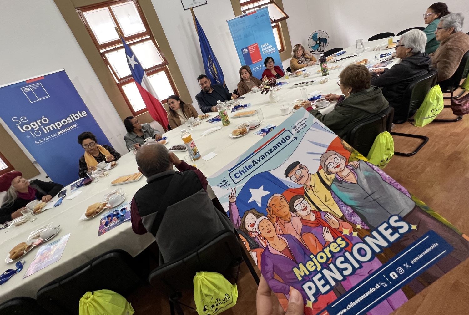 Las autoridades regionales de gobierno realizaron esta mañana un desayuno con dirigentes y adultos mayores de diferentes clubes de Arica con el fin de conocer cómo ha sido el pago del aumento de la Pensión Garantizada Universal (PGU) a $250.000 para las personas de 82 años y más, como parte de la implementación de la Reforma de Pensiones.