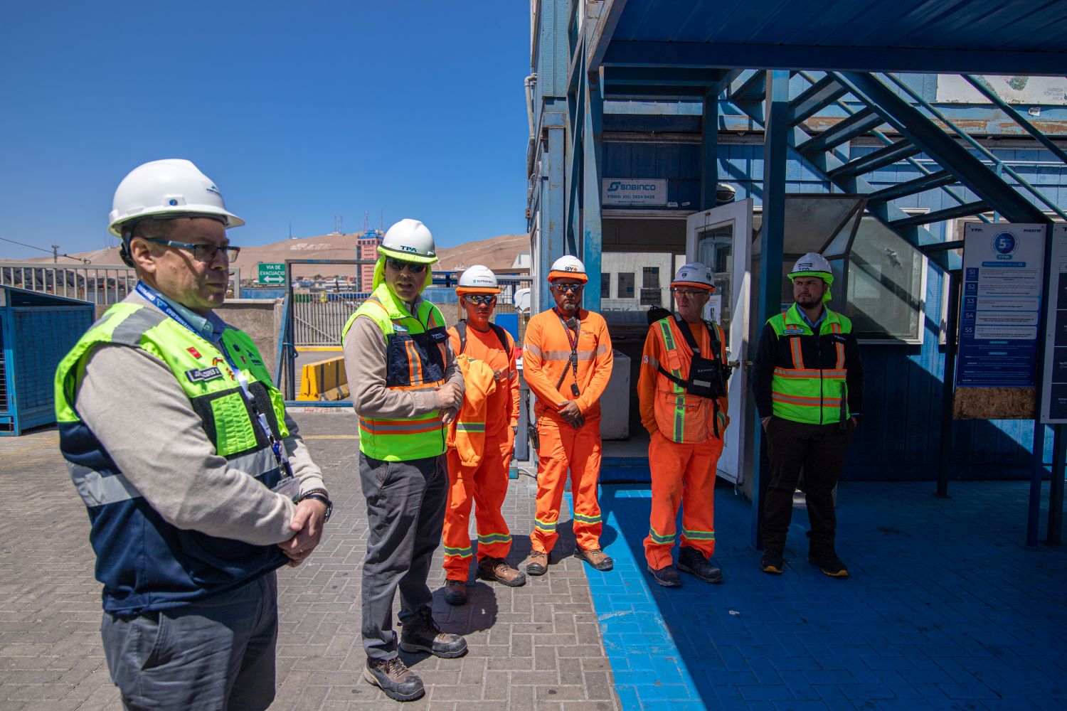 Durante la jornada, el Gerente General de TPA, Camilo Jobet y el Gerente General de la EPA, Jorge Cáceres, recorrieron parte del puerto para saludar personalmente a los trabajadores en terreno, destacando la labor esencial que realizan en cada operación.