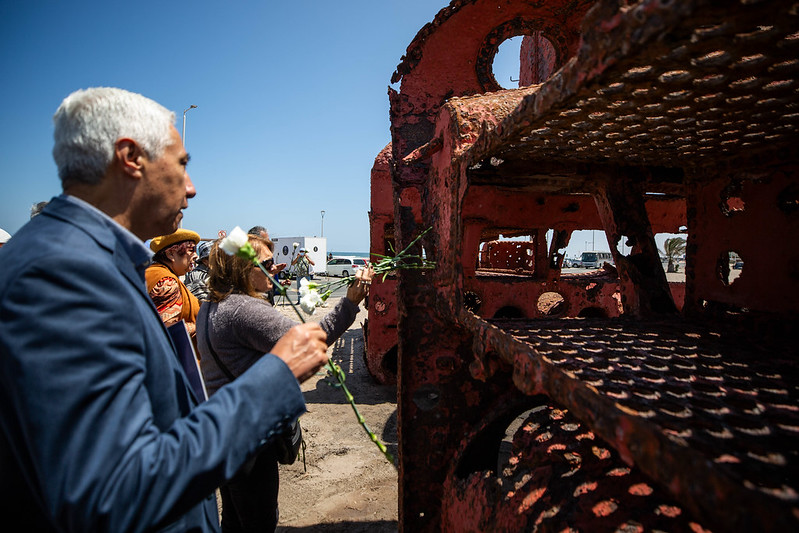 Con el ulular de sirenas del Cuerpo de Bomberos de Arica y con una ofrenda floral, los presentes rindieron homenaje a las personas que perdieron la vida y a los ciudadanos que reconstruyeron nuestra ciudad tras el cataclismo ocurrido a las 17:00 horas del jueves 13 de agosto de 1868.
