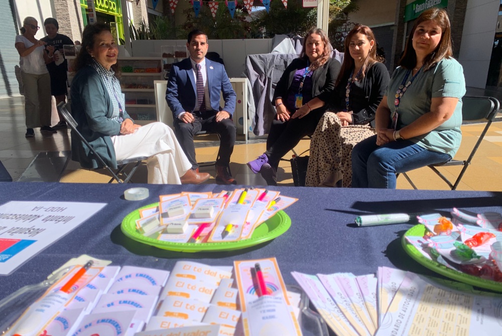 En el mall plaza se dieron cita la directora del SSAP, Patricia Sanhueza, la directora regional del Servicio de Reinserción Social Juvenil, Karen Medina, y el director regional del Servicio Especializado de Protección de la Niñez y Adolescencia, Gustavo Marín, para ver los stands del subdepartamento de salud mental del SSAP, Hospital de día infanto adolescente y del equipo del GES de alzhéimer y otras demencias.