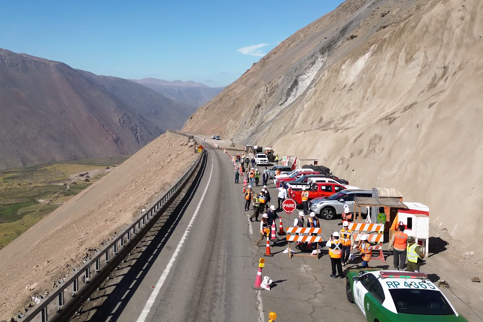 Subsecretario de Obras Públicas, Danilo Núñez, inspeccionó trabajos con mallas de acero importadas de Suiza, determinándose la factibilidad de reabrir la ruta también en la noche. Esta es la primera de cuatro medidas que se ejecutan en torno a la accesibilidad y de seguridad vial para la región.