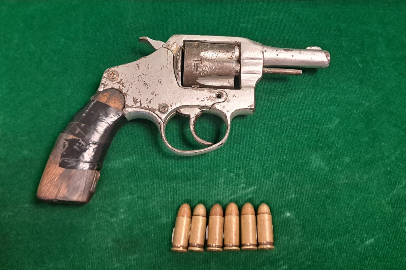 Al interior del móvil, encontraron un revólver a fogueo de color gris, aparentemente modificado, que no mantenía marca ni modelo visibles y que estaba cargado con seis municiones calibre .32. Adicionalmente, se encontró un envoltorio plástico conteniendo una sustancia de color verde, presumiblemente marihuana.