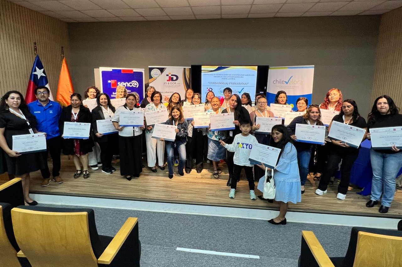 Un total de 34 cuidadoras primarias de la región de Arica y Parinacota certificaron sus competencias laborales gracias al Ministerio del Trabajo y Previsión Social, a través del Servicio Nacional de Capacitación y Empleo (SENCE) y ChileValora. El perfil ocupacional corresponde al sector Servicios de Salud y Asistencia Social, específicamente al subsector Servicios de Asistencia Social.