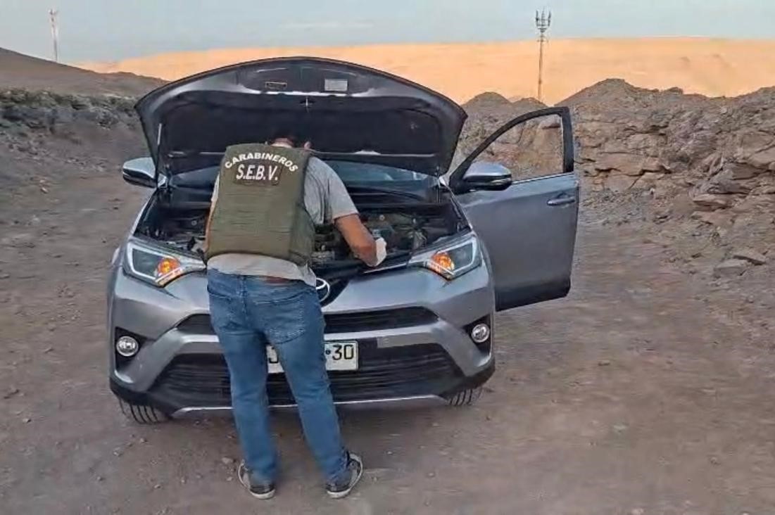 El vehículo, un Toyota Rav4 año 2016, estaba siendo revisado por un sujeto, presumiblemente preparándolo para su traslado hacia el vecino país de Bolivia. Al percatarse de la presencia policial, el individuo intentó huir a pie por el terreno irregular. Carabineros inició un seguimiento de infantería que culminó con la aprehensión del sospechoso, un ciudadano boliviano de 18 años, sin antecedentes penales.