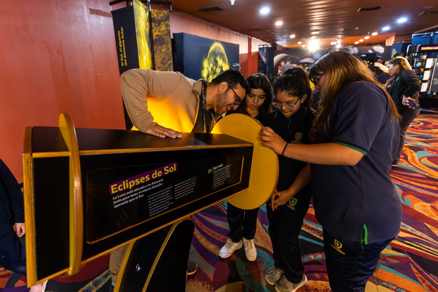 La muestra invita a niños, niñas, jóvenes y familias completas a comprender de una forma lúdica el sistema planetario, explorando a través de 12 módulos interactivos, conceptos como el movimiento de rotación y traslación, las características del Sol, la Luna y los planetas que conforman nuestro entorno.