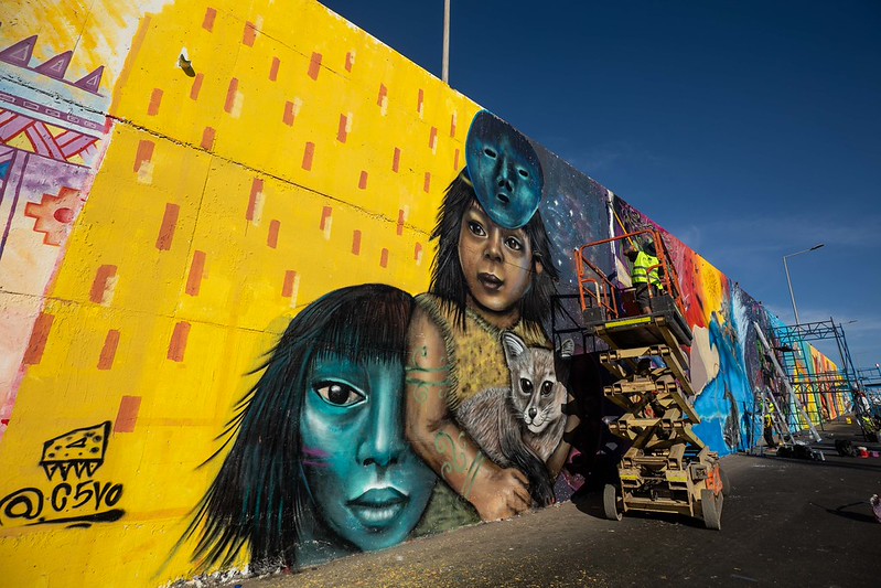 “Los muralistas soñaban con poder pintar estos muros. Hace muchos años pidieron pintarlos y en esta gestión por fin lograron hacerlo”, destacó el concejal de los jóvenes, Maximiliano Manríquez.
