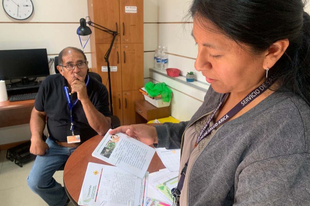 Arias trabajará estrechamente con el médico aymara Homero Altina, oriundo de la comuna de Camarones, quien realiza atención complementaria, una vez por semana, en el ESSMA Sur y en el CSMC Norte. Junto con apoyarlo en esas consultas, anunció que programarán talleres para el fortalecimiento del sistema médico indígena.