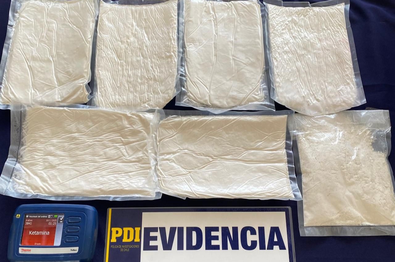 El detenido fue sorprendido por personal Avsec, el cuál dio cuenta a funcionarios policiales, quienes verificaron que portaba 7 paquetes contenedores de ketamina en polvo adosados a su cuerpo.