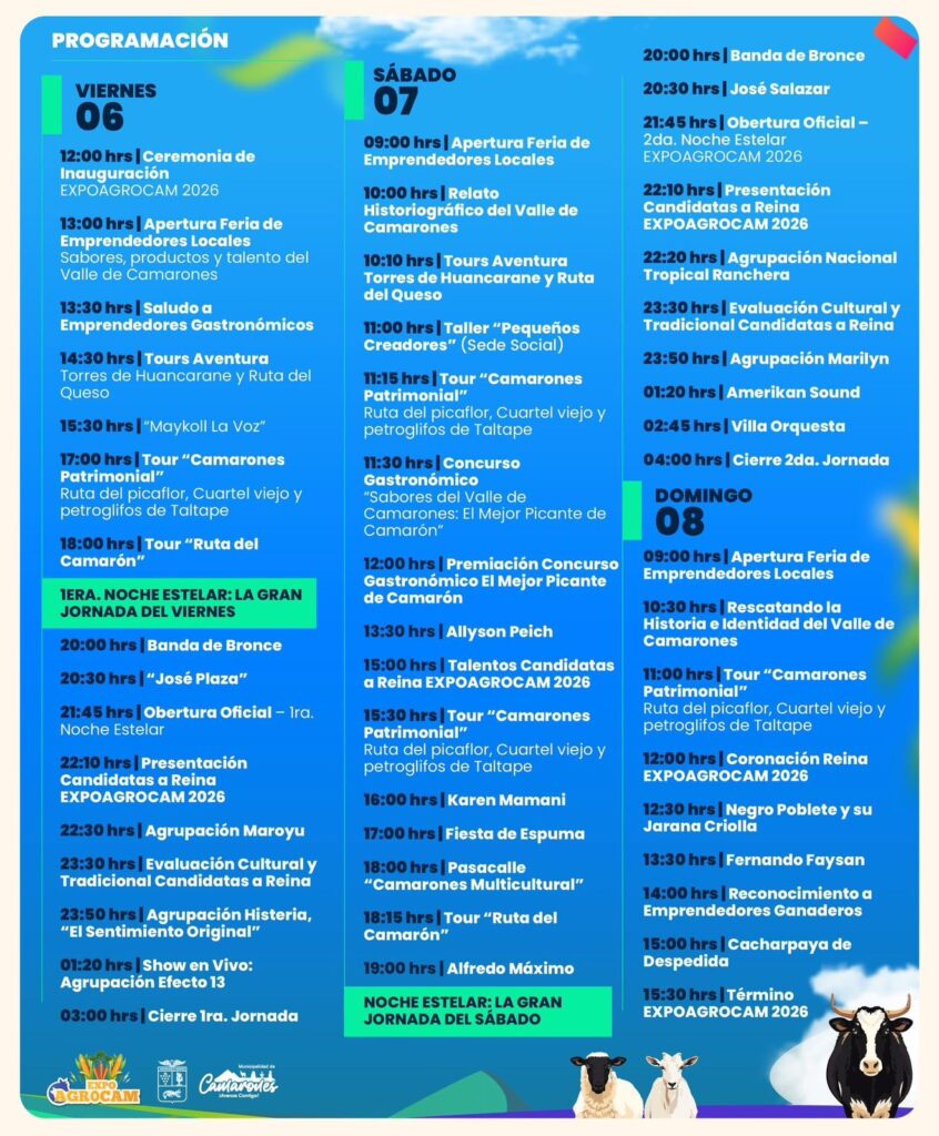“EXPOAGROCAM es una fiesta que nace desde la comunidad y para la comunidad. Queremos que quienes nos visiten vivan la identidad de nuestro valle, conozcan nuestras tradiciones, apoyen a nuestros emprendedores y disfruten de un panorama familiar, seguro y lleno de alegría”.