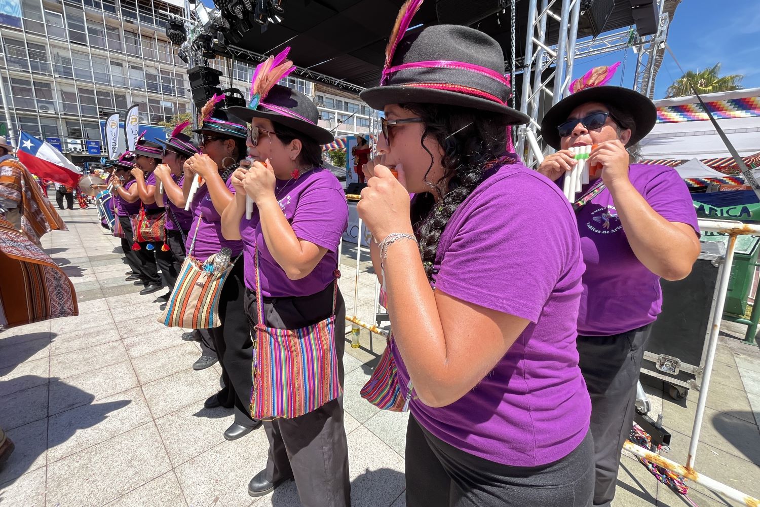 “Venimos con el pueblo de Surire. Nuestro nombre es Suma Warmi, significa mujer buena, mujer bonita. Desde hace 13 años que llevamos tocando con nuestras compañeras. En este momento somos cerca de 13 personas. Todas tocamos Lakita y tocamos Tarqueada”, señaló Diana Gómez, Lakita Suma Warmi.
