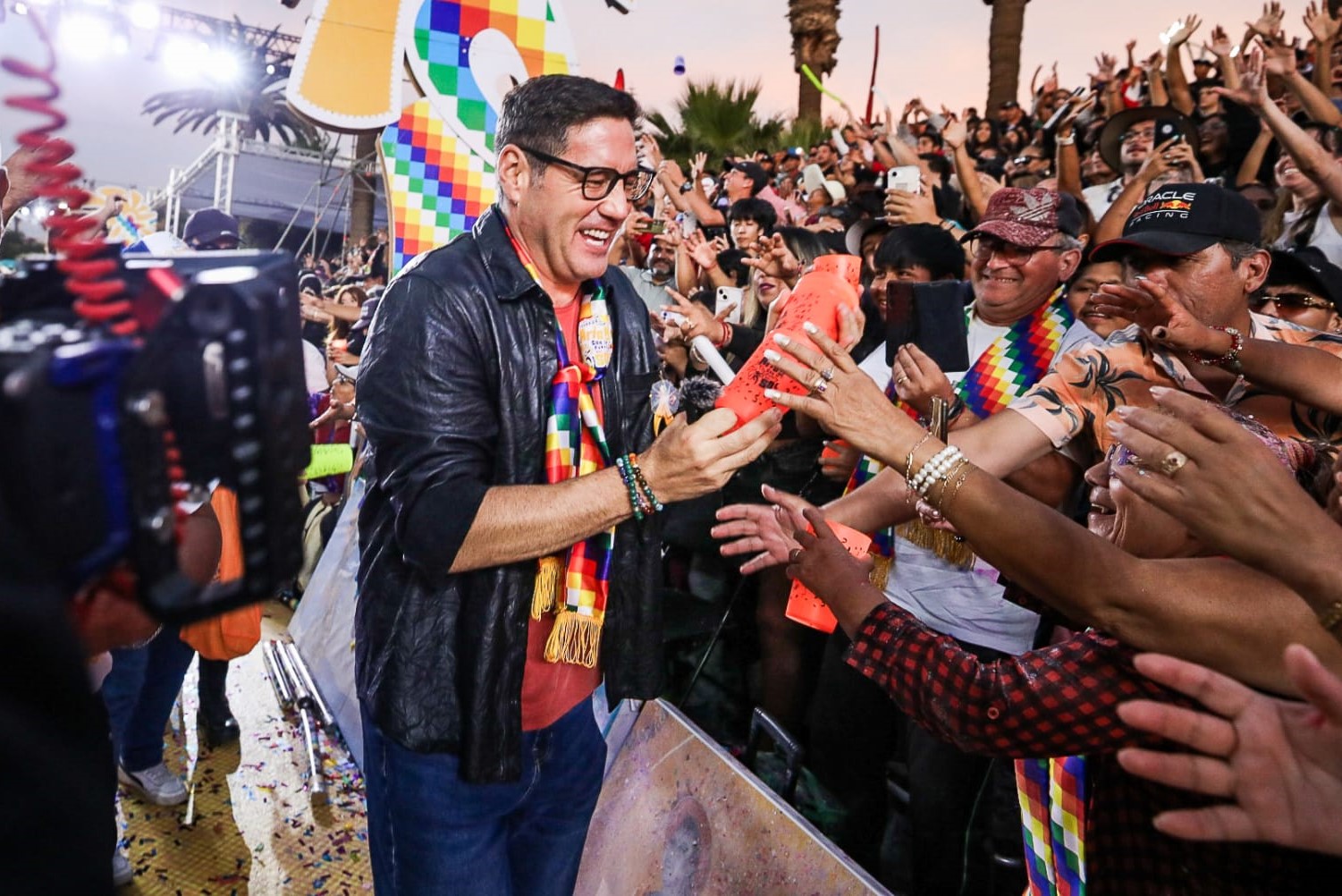 Con su característica risa y una alegría desbordante, el reconocido animador de “Lugares que Hablan”, Pancho Saavedra, fue uno de los grandes protagonistas del Carnaval Andino “Arica con la Fuerza del Sol”. Su presencia encendió aún más la fiesta, provocando una inmediata conexión con el público, que lo recibió con una ovación y largos aplausos apenas hizo su aparición.