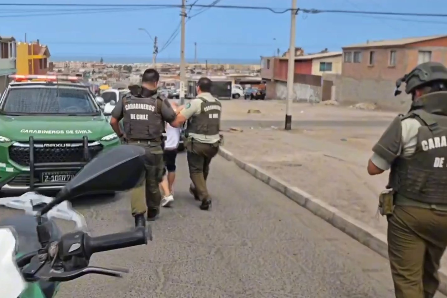 Un amplio despliegue policial, que incluyó la participación de las Unidades Especializadas de Carabineros, personal operador de dron de la I. Municipalidad de Arica, GOPE y Control de Orden Público, culminó con la detención de un sujeto, Chileno, mayor de edad quien horas antes había concurrido hasta el domicilio de su ex pareja, efectuando al menos cinco disparos que impactaron en el domicilio de la denunciante y en un vehículo particular. Posteriormente gracias a diligencias investigativas desarrolladas por parte del personal de la 6° Comisaría de Carabineros Chinchorro Norte, se logró individualizar al imputado, obteniendo la ubicación del domicilio en el que se encontraba oculto, solicitando una orden de detención y entrada y registro al domicilio.