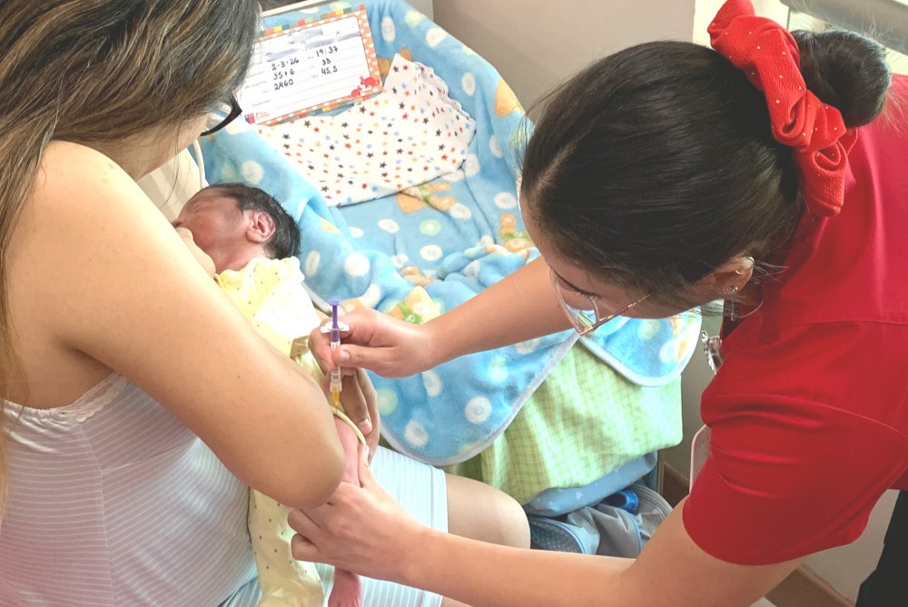 Para constatar el inicio de este proceso en la maternidad del Hospital Regional de Arica Dr. Juan Noé, la SEREMI de Salud, Marta Saavedra, la directora del Servicio de Salud Arica y Parinacota (SSAP), Patricia Sanhueza, y el director del establecimiento, Pedro Bahamondes, acompañaron a dos madres en la administración del fármaco.
