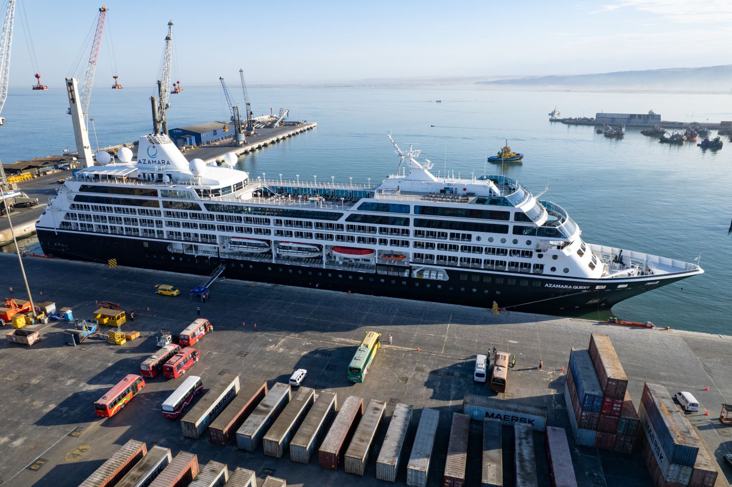 Esta mañana recaló en el puerto de Arica el Ms. Azamara Quest, el tercer crucero de la Temporada 2025-2026.