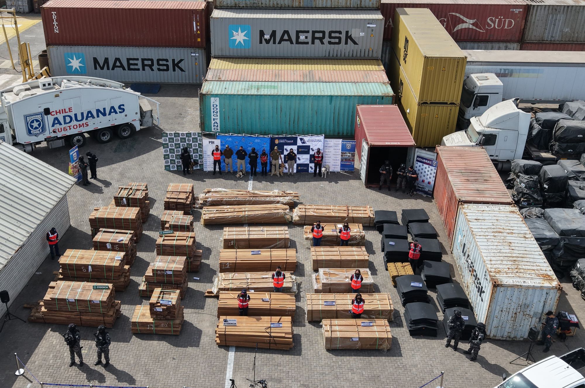 En el marco de una intensa investigación se incautaron tres cargas de madera y caucho contaminadas con drogas. Los productos arrojaron un peso total de 68,726 toneladas, las que tenían como destino puertos de Alemania, Italia y México. En diciembre de 2025 ya se había registrado una carga de 19,5 toneladas de madera contaminada con cocaína.