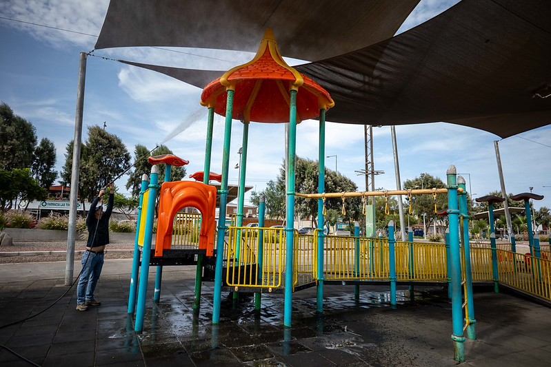 Asimismo, se suma la plaza Camilo Henríquez, ubicada en Diego Portales con Chapiquiña y que recientemente fue inaugurada, en la que se hizo limpieza de pisos y escaños con el propósito de mantener en buenas condiciones el espacio público para la comunidad que hace uso de ella.