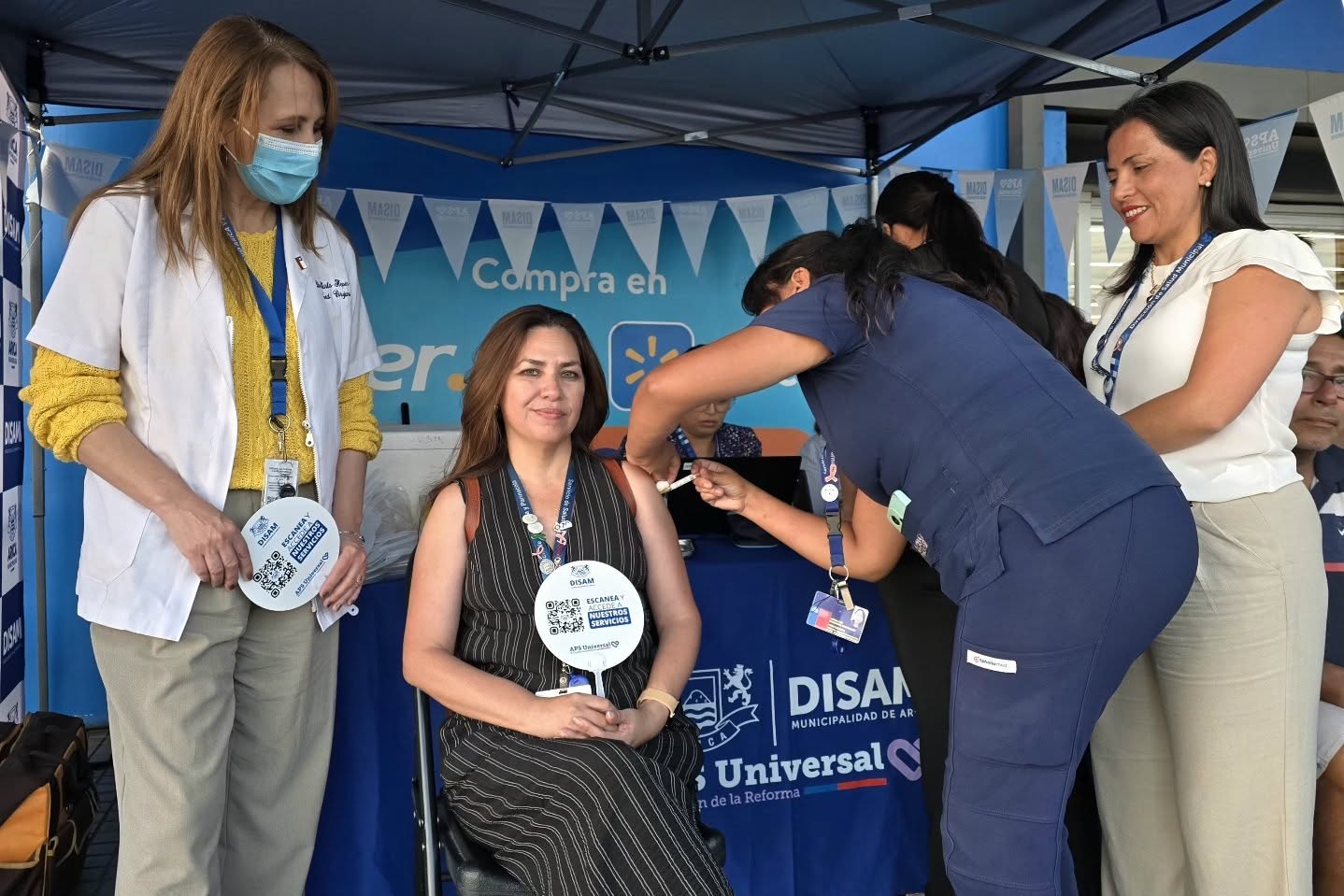 Con un operativo de vacunación en el frontis del Supermercado Líder de Diego Portales, se conmemoró el Día Mundial de la Salud en Arica. La actividad, encabezada por la seremi de Salud Karla Kepec, las directoras del Servicio de Salud Arica y Parinacota (SSAP), Patricia Sanhueza; y de Salud Municipal (Disam), Claudia Villegas, tuvo una excelente adherencia por parte de la comunidad que eligió cuidarse y proteger su salud ante el aumento de circulación de virus como la influenza y el covid-19.