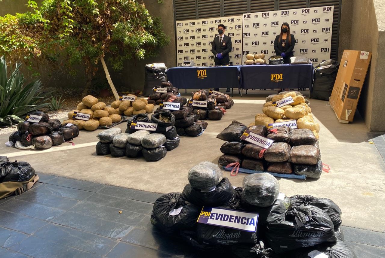 La indagatoria contra Los Caleños incluyó, en abril del año pasado, operativos coordinados en las ciudades de Arica, Iquique y Santiago, y concluyó con la incautación de poco más de 296 kilos de cannabis sativa, es decir, casi 300 mil dosis de esta sustancia ilícita, avaluadas en casi 1.500 millones de pesos, además de armas y otras evidencias de interés.