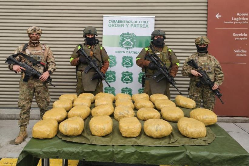 El hallazgo se produjo durante patrullajes preventivos realizados en la Ruta 11-CH, donde funcionarios de la Tenencia Chungará (F) de Carabineros de Chile, en coordinación con personal del Ejército, detectaron 26 paquetes de droga abandonados en un sector cercano a la frontera. Tras la revisión correspondiente, se confirmó que la sustancia correspondía a marihuana.
